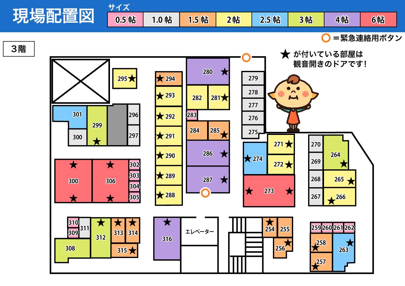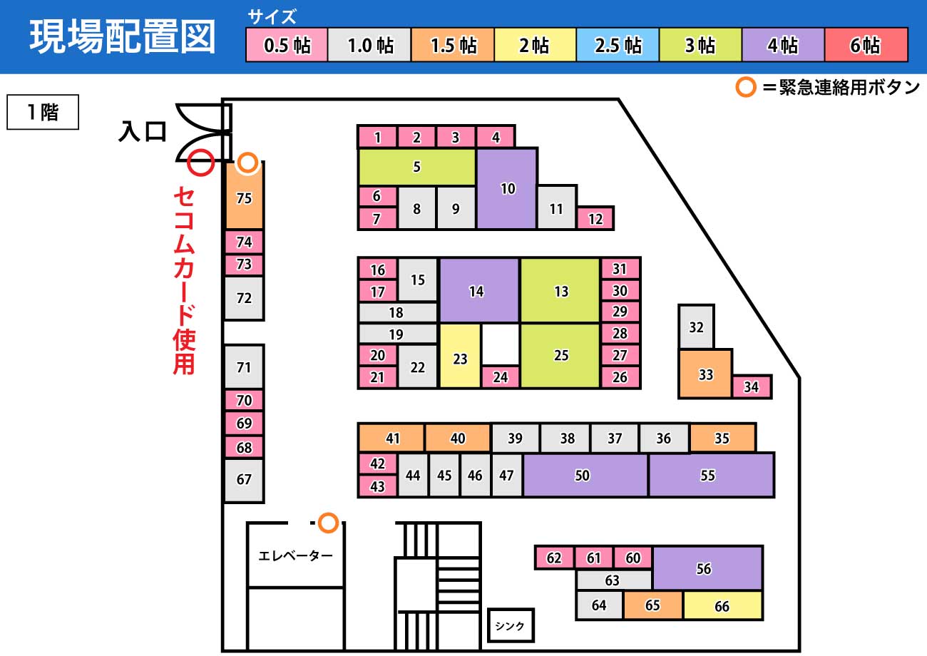 | 広さ | 0.5〜6.0 畳 |