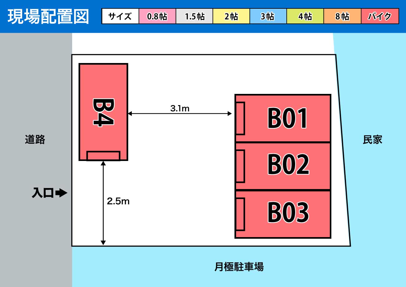事業所 | 株式会社イコム | 備考 | 通常、レンタルボックスの利用開始は申込手続きの完了後、土日祝日を除く3営業日でご案内させて頂いております。※本日より平日3営業日以内でのご利用開始をご希望のお客様はお電話(0120-109-156)にてご相談ください。下記予約フォームで送信いただいた時点では予約確定とはなりません。部屋の空きの照会、内容を確認したのちに初めてご予約が確定となります。※表示寸法は目安となります。実際の収納スペース寸法とは誤差がある可能性もございますので、予めご了承下さい。【キャンペーン実施中】詳細は、お見積もりへ! |