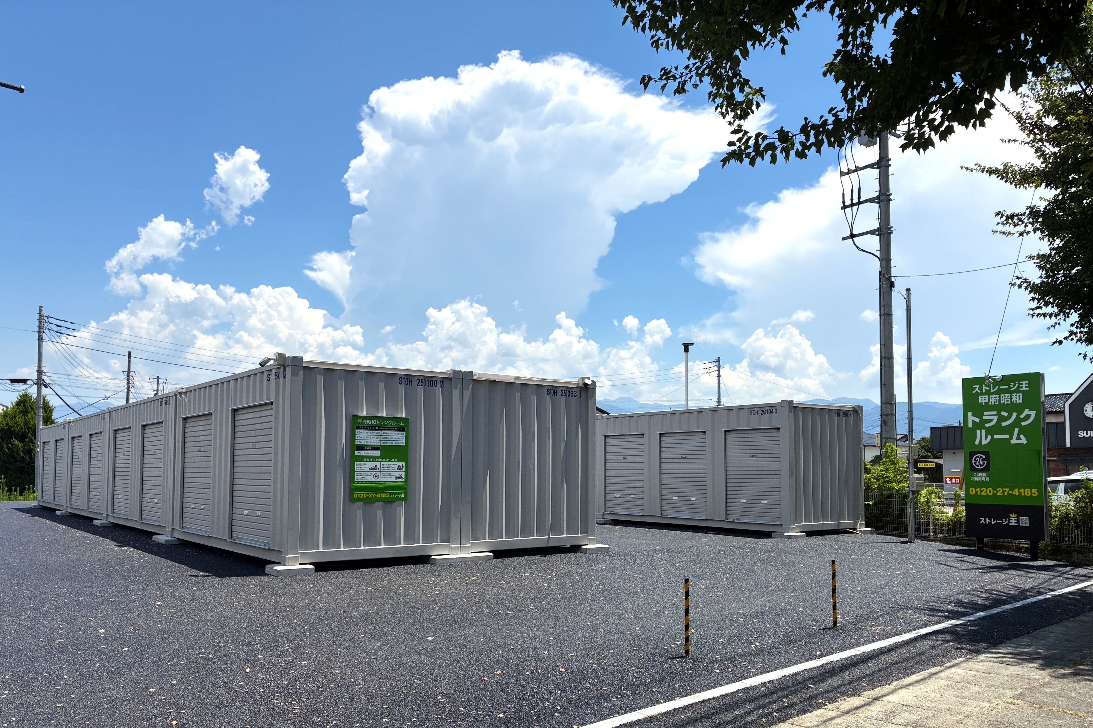 備考 | 【2025年8月1日OPEN!】 24時間利用可能な屋外型トランクルームです。 夜間照明や防犯カメラの設置は準備中となります。 敷地内はアスファルト舗装を施し、車を横付けできるため出し入れもラクラクです。※キャンペーンは10月末までにお申込みの方対象です。 |